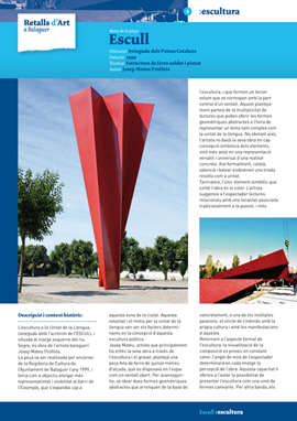 La peça va ser realitzada per encàrrec de la Regidoria de Cultura de l’Ajuntament de Balaguer l’any 1999, i tenia com a objectiu atorgar més representativitat i visibilitat al barri de l’Eixample, que s’expandia cap a aquesta zona de la ciutat. Aquesta voluntat i el motiu per la unitat de la llengua van ser els factors determinants en la concepció d’aquesta escultura pública.